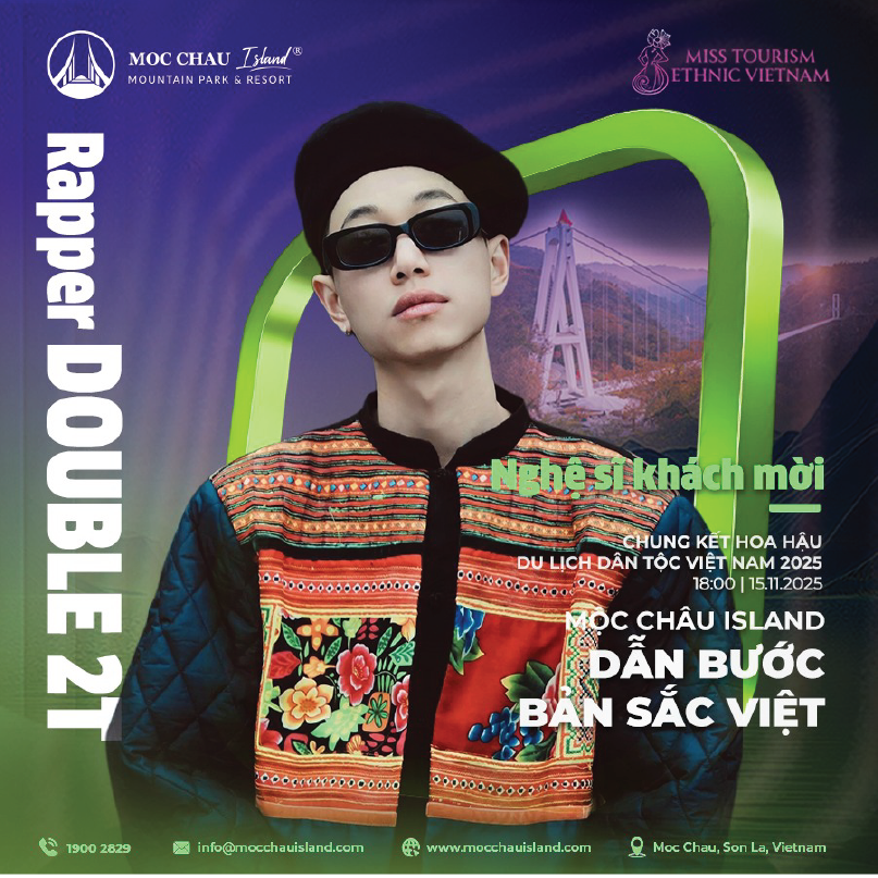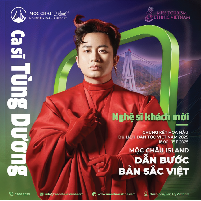 Sự kiện quy mô chưa từng có tại Tây Bắc với dàn khách mời hạng A, 25 thí sinh tài sắc, cùng loạt hoạt động độc đáo sẽ mang đến một đêm hội đáng nhớ. Hãy cùng đếm ngược tới khoảnh khắc bùng nổ của Đêm Chung kết Hoa hậu Du lịch Dân tộc Việt Nam 2025, diễn ra vào 18:00 ngày 15.11.2025 tại Mộc Châu Island.