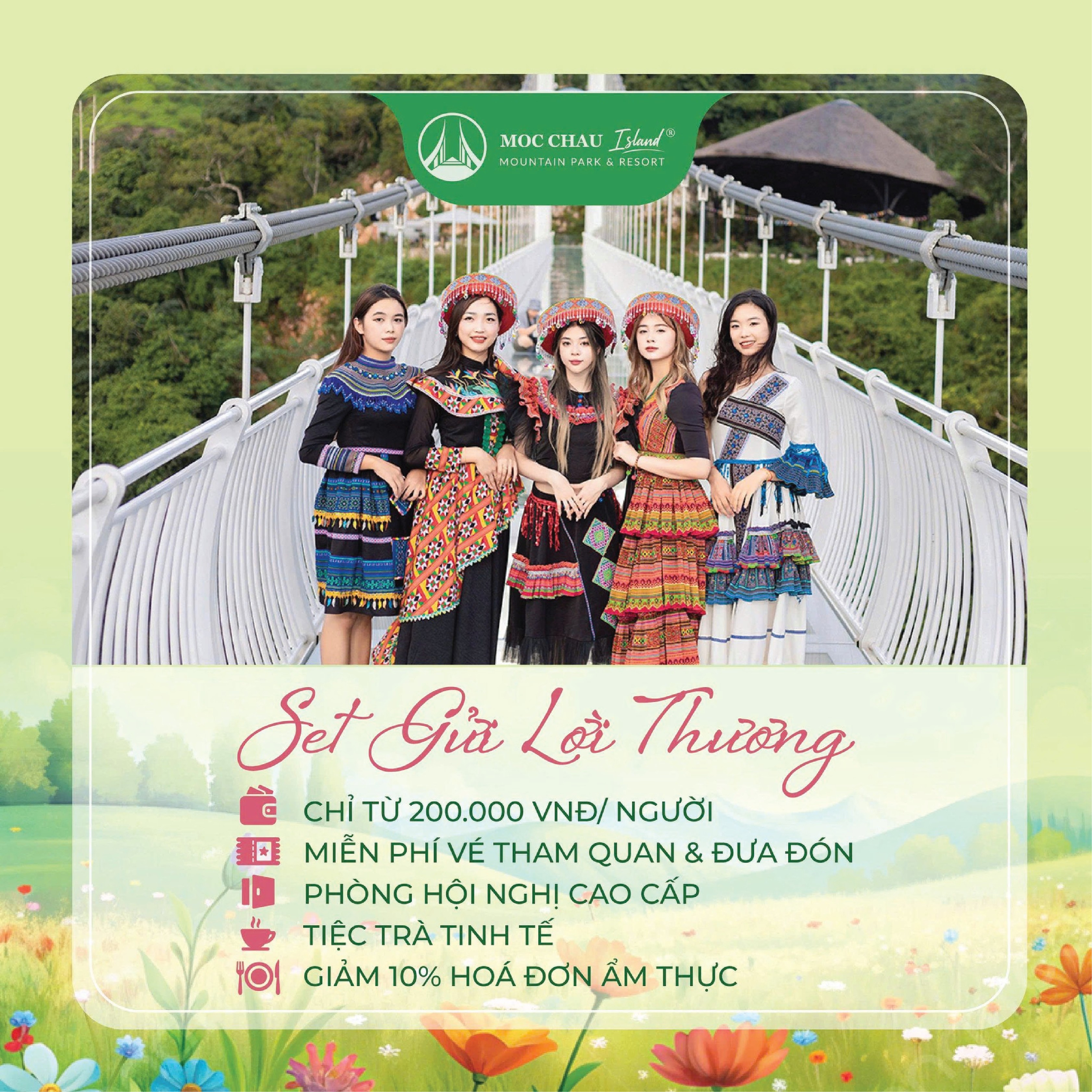 Từ 01.10 đến 31.10.2025, Mộc Châu Island mang đến những gói ưu đãi đặc biệt nhân dịp Ngày Phụ nữ Việt Nam 20/10, cơ hội để bạn gửi trao yêu thương theo cách thật tinh tế và đáng nhớ. Dù là buổi tiệc thân mật hay buổi gặp gỡ ấm cúng, mọi khoảnh khắc tại Mộc Châu Island đều sẽ trở nên lung linh và đáng nhớ hơn bao giờ hết.