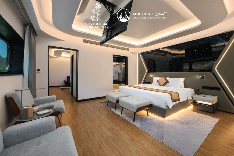 Tại Mộc Châu Island, mỗi khu nghỉ dưỡng là một mảnh ghép riêng trong “bức tranh” trải nghiệm của bạn: Lune Village nhiều màu sắc cho tâm hồn mơ mộng, Bullet Hotel hiện đại mô phỏng đoàn tàu sang trọng, hay Nebula Glamping mang dáng hình dải ngân hà dành cho những nhóm bạn thân và gia đình đông thành viên. Dù bạn đồng hành cùng người thương, hội bạn hay cả đại gia đình, Mộc Châu Island đều có một không gian phù hợp để bạn thư giãn, nạp năng lượng và hòa mình vào không khí rộn ràng trước thềm Đêm Chung kết Hoa Hậu Du Lịch Dân Tộc Việt Nam 2025.