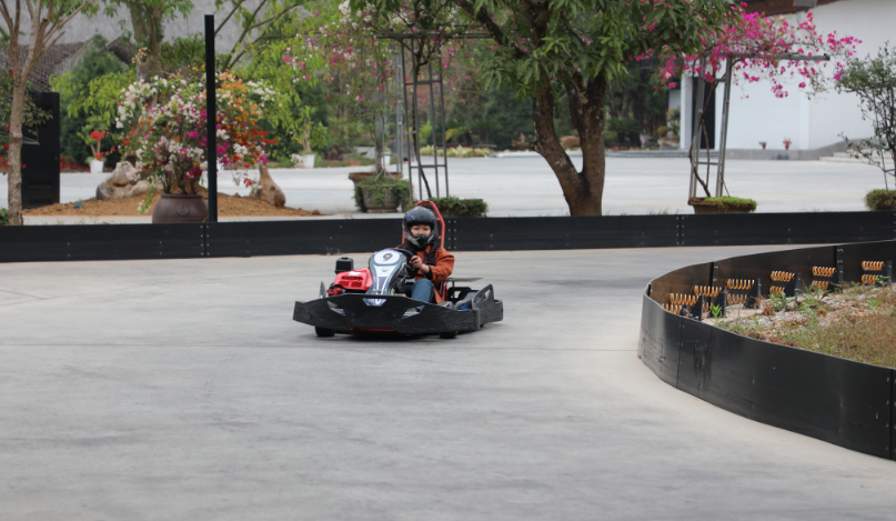 Đường đua F1 Kart Club được xem là một trong những điểm nhấn tại Mộc Châu Island. Dàn “siêu xe” đẳng cấp với tốc độ tối đa lên đến 70km/h cùng sân đua dài mô phỏng đường đua F1 chuyên nghiệp chắc chắn sẽ mang đến trải nghiệm chân thực và trọn vẹn, giúp bạn tự tin “hết ga hết số”. Đường đua này cũng được rất nhiều hội gia đình lựa chọn vì các em nhỏ cũng có thể tham gia với bố mẹ, anh chị em. Trước mỗi lần chơi, bạn sẽ được hướng dẫn cách chơi, đeo đồ bảo hộ để đảm bảo an toàn.