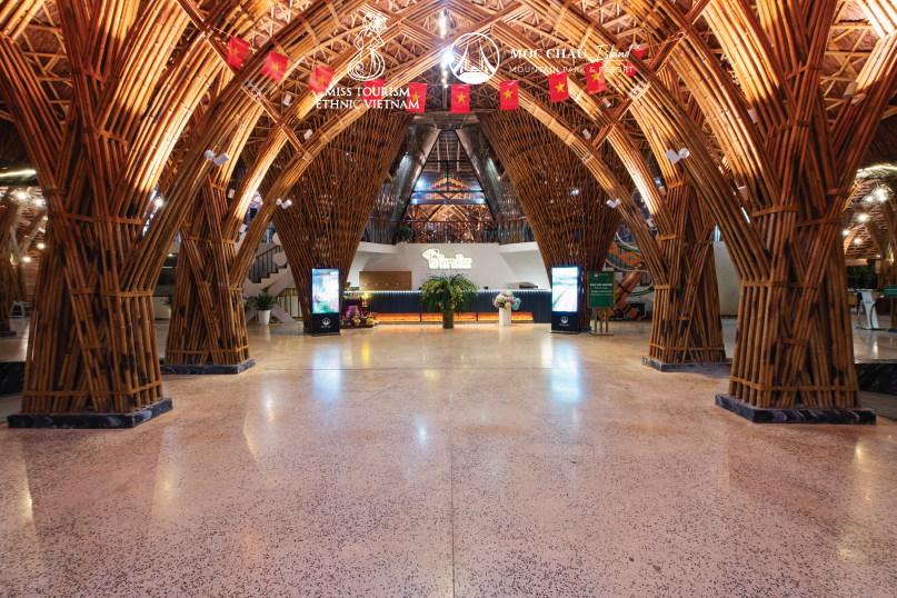 Lấy cảm hứng từ vẻ đẹp thuần khiết của tre Việt Nam, TaBamboo được kiến tạo như một công trình nghệ thuật mang đậm dấu ấn thiên nhiên. Không gian mở hòa cùng ánh sáng tự nhiên, những cột tre uốn cong mềm mại tạo nên cảm giác vừa ấm cúng vừa phóng khoáng giữa cao nguyên Mộc Châu.